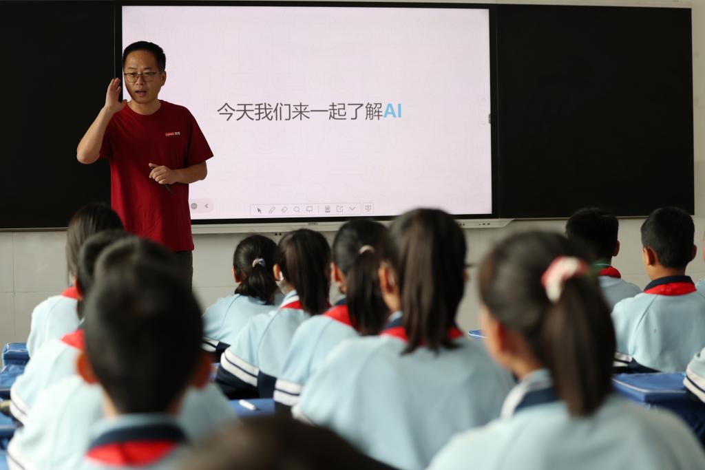 9月10日,联想AI专家陈明金在盐川学校为孩子们上AI启蒙课程。新华社记者 陈斌 摄