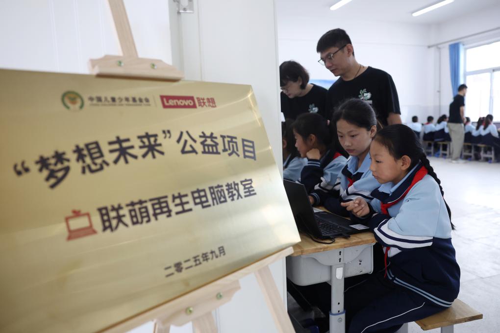 9月10日,联想联合中国儿童少年基金会走进甘肃省定西市漳县盐川学校,开展“科技赋能乡村教育 AI拥抱美好未来”公益活动。依托联想爱心志愿者捐赠的闲置电脑,结合专业的再生技术及运维资源支持,并进行一定比例的电脑配捐,活动方为盐川学校师生捐建了“再生电脑教室”,同时送去了3000册图书,不仅实现资源的循环利用,更为乡村学校量身打造高标准的信息化教学环境。